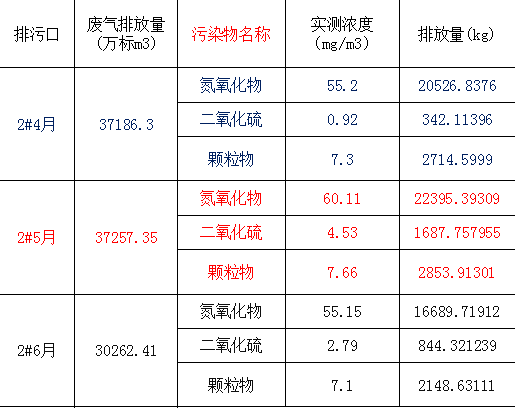 2020年第一季度、第二季度排放情況